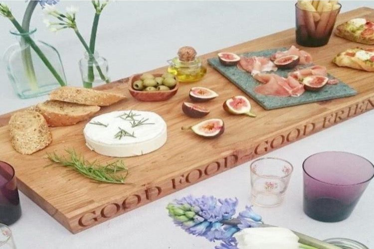 This solid oak board looks so beautiful crammed with delicious food but also offers a great place to place hot pots and bowls for a great kitchen supper in order to save the dining table.