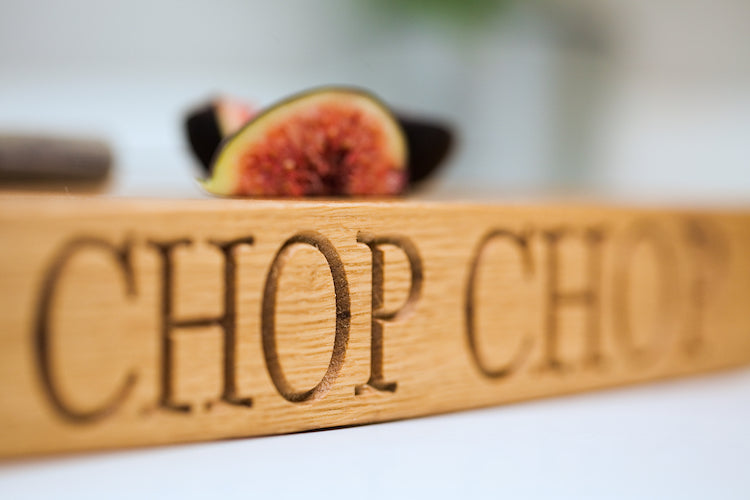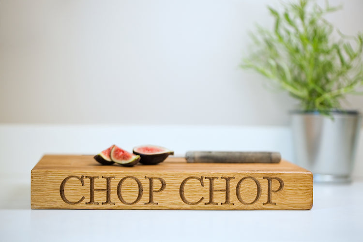 Choose either as a blank board or engraved with CHOP CHOP or add your own personalisation.