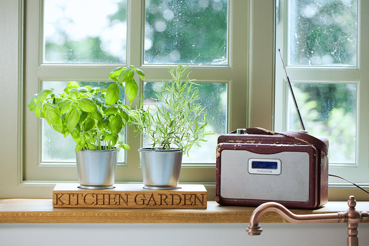Our solid oak herb garden sits neatly on the window sill but the pots can be easily removed for repositioning whilst cooking, prepping and watering.